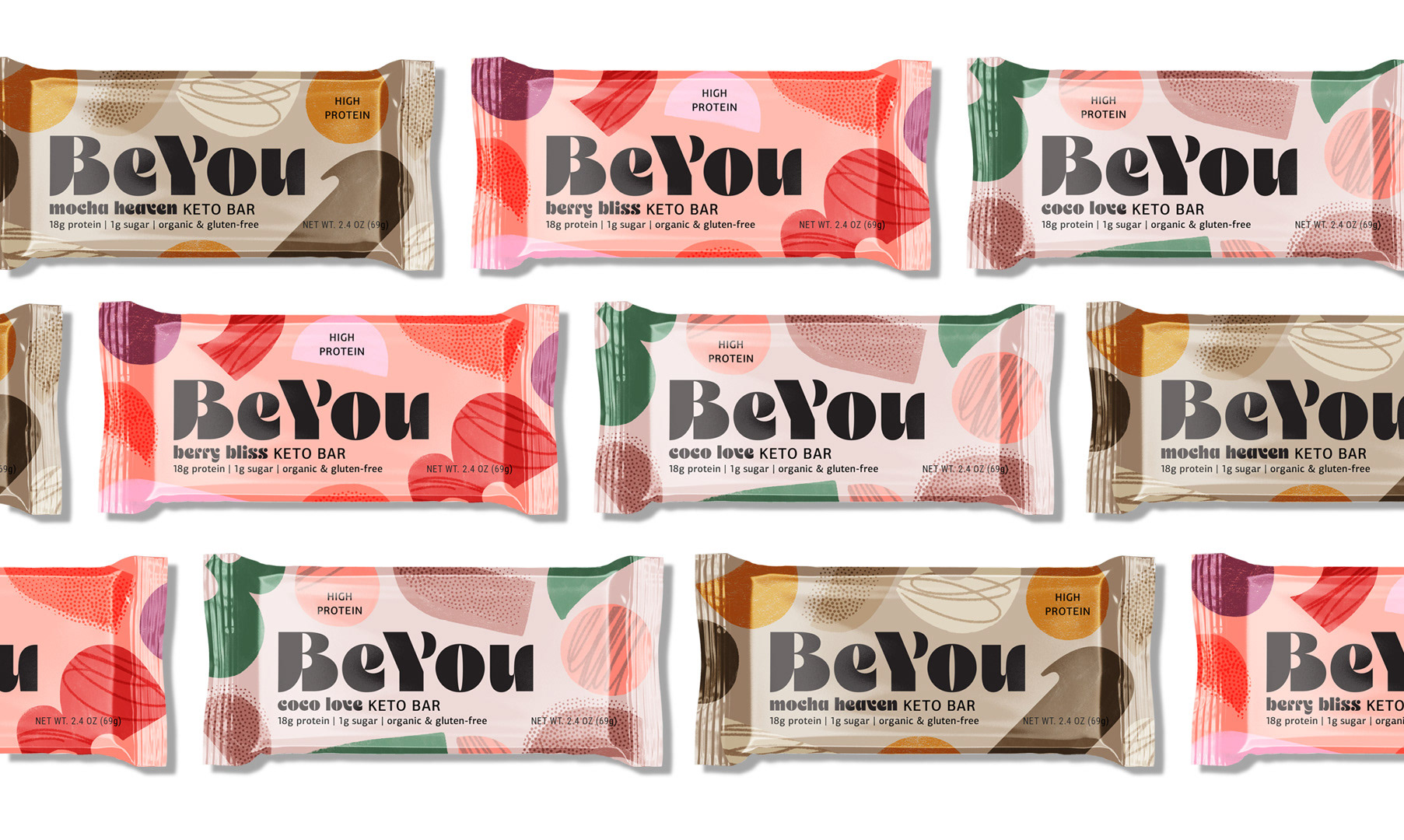 Meet BeYou, the new exciting and disruptive health bar to hit the market this year. The main target audience are millennial women on the move looking for a vibrant and fun protein bar. The goal of the project was to develop a brand that would stand out in the health food market, while maintaining a fashionable aesthetic.