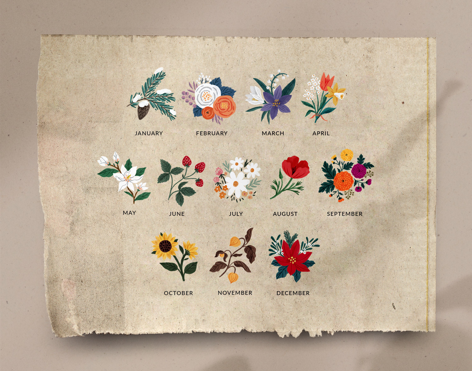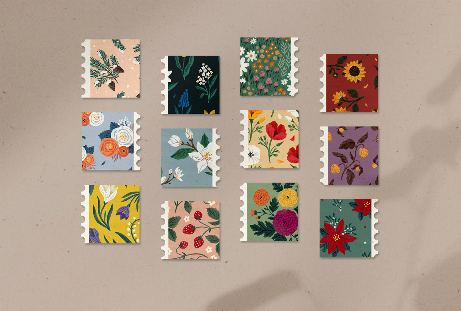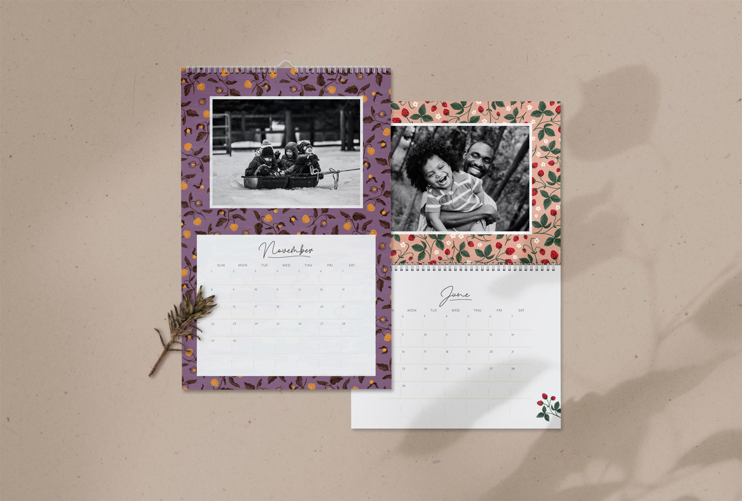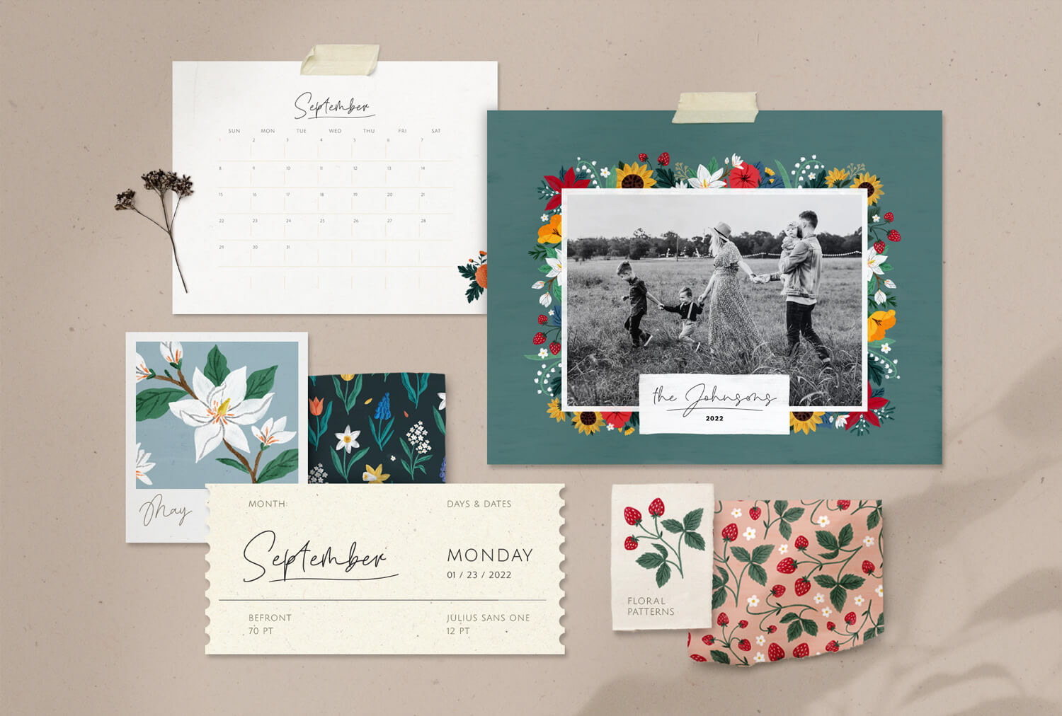 Customizable flip calendar (in 2 sizes) featuring patterns with seasonal florals.