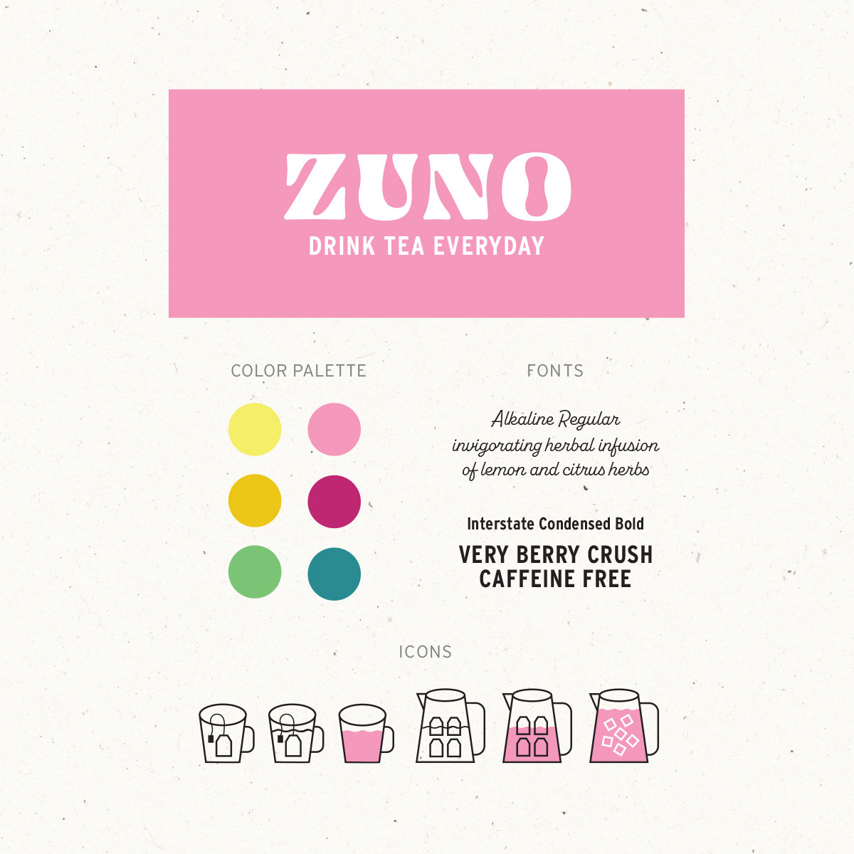 Zuno is a new range of unique fruit tea blends from across the globe. The client wanted to create a fresh and youthful brand identity targeted at a younger audience. Inspired by modern stylized illustration, Zuno’s identity features vivid colors and fun illustrations with characters set against luscious fruity backdrops. Fun typography and playful illustrations work together, easily communicating the benefits of herbal infusions.